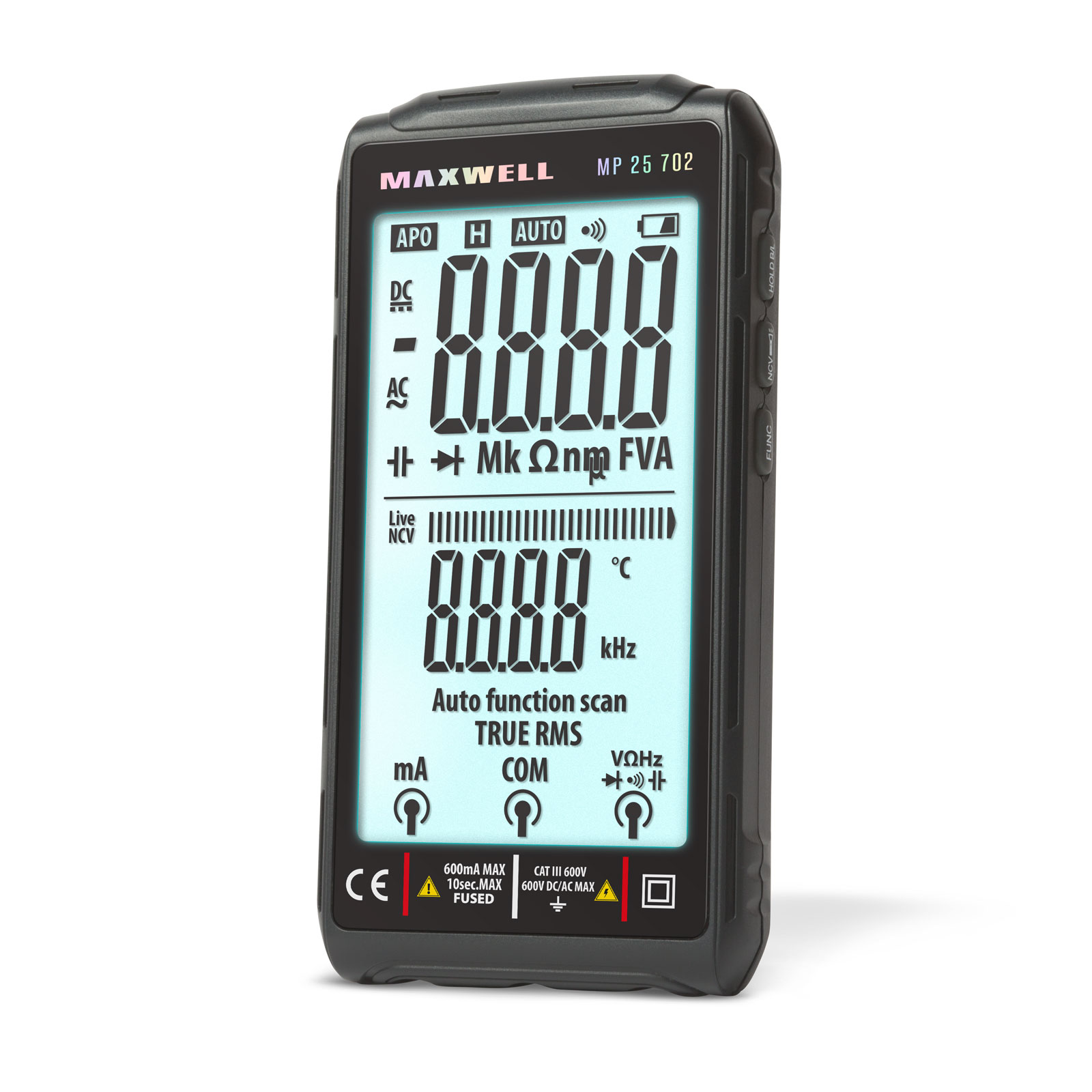 A teljesen automata multiméter előnye, hogy a mérés során a készülék automatikusan felismeri melyik funkcióra van szükség és abban végzi el a mérést. A nagyméretű kijelzőről könnyen és gyorsan leolvashatóak a mérési eredmények. A készülék hátoldalán található szenzor segítségével detektálhat feszültséget, anélkül, hogy a megbontaná a kábelezést. Ergonomikus készülékház, kompakt méret és könnyű kezelhetőség jellemzi. A praktikus, keményfalú hordozótáska megvédi a terméket a szállítások alkalmával. A beépített akkumulátor segítségével hosszú ideig használhatja a készüléket töltés nélkül, a Type-C porton keresztül gyorsan feltöltheti a készüléket, ezzel maximalizálva a készülék üzemidejét.