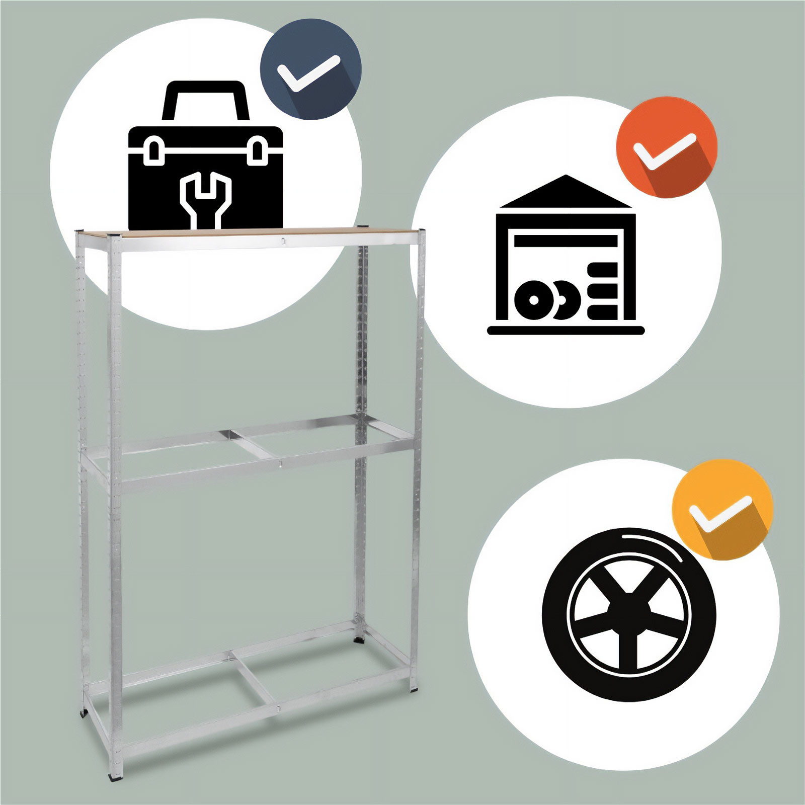 Tárolja rendezetten és biztonságosan a gumiabroncsait ezzel a strapabíró, fémből készült tároló állvánnyal. Az állvány praktikus kialakításának köszönhetően ideális választás garázsokba, műhelyekbe vagy akár raktárakba is.