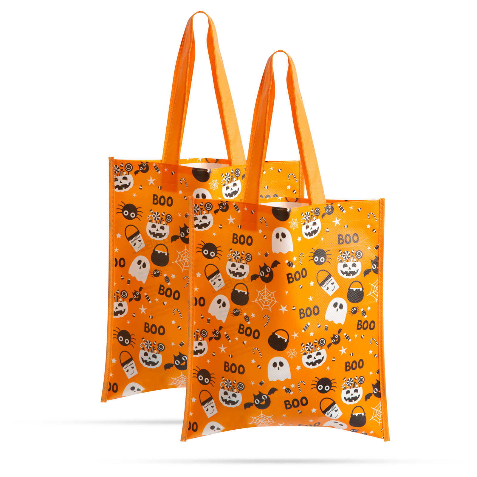 Ha szeretne igazán ütős és stílusos ajándékot adni barátainak és családjának halloweenkor, akkor ez a halloweeni ajándéktáska tökéletes választás lehet átnyújtására! A vidám designnal ellátott, nem szőtt anyagból készült táska, narancssárga alapon különböző halloweeni motívumokkal díszített. Strapabíró anyagból készült, mérete miatt ideális kisebb ajándékok és édességek tárolására alkalmas. Nagyméretű fogantyújának köszönhetően könnyű és kényelmes hordozhatóságot biztosít.
