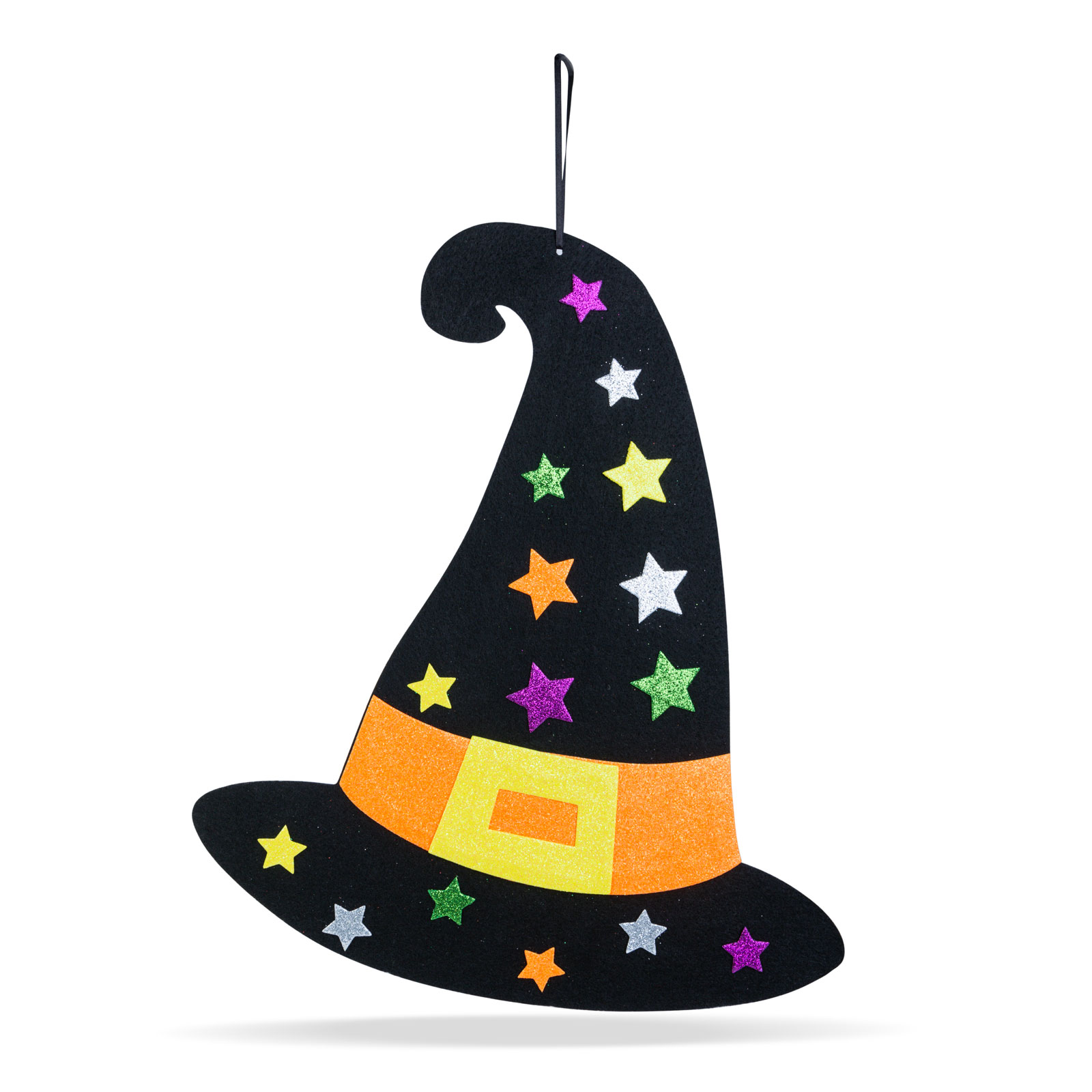 Halloween-i dekoráció – boszorkánykalap – akasztható – filc – 38 x 33 cm
