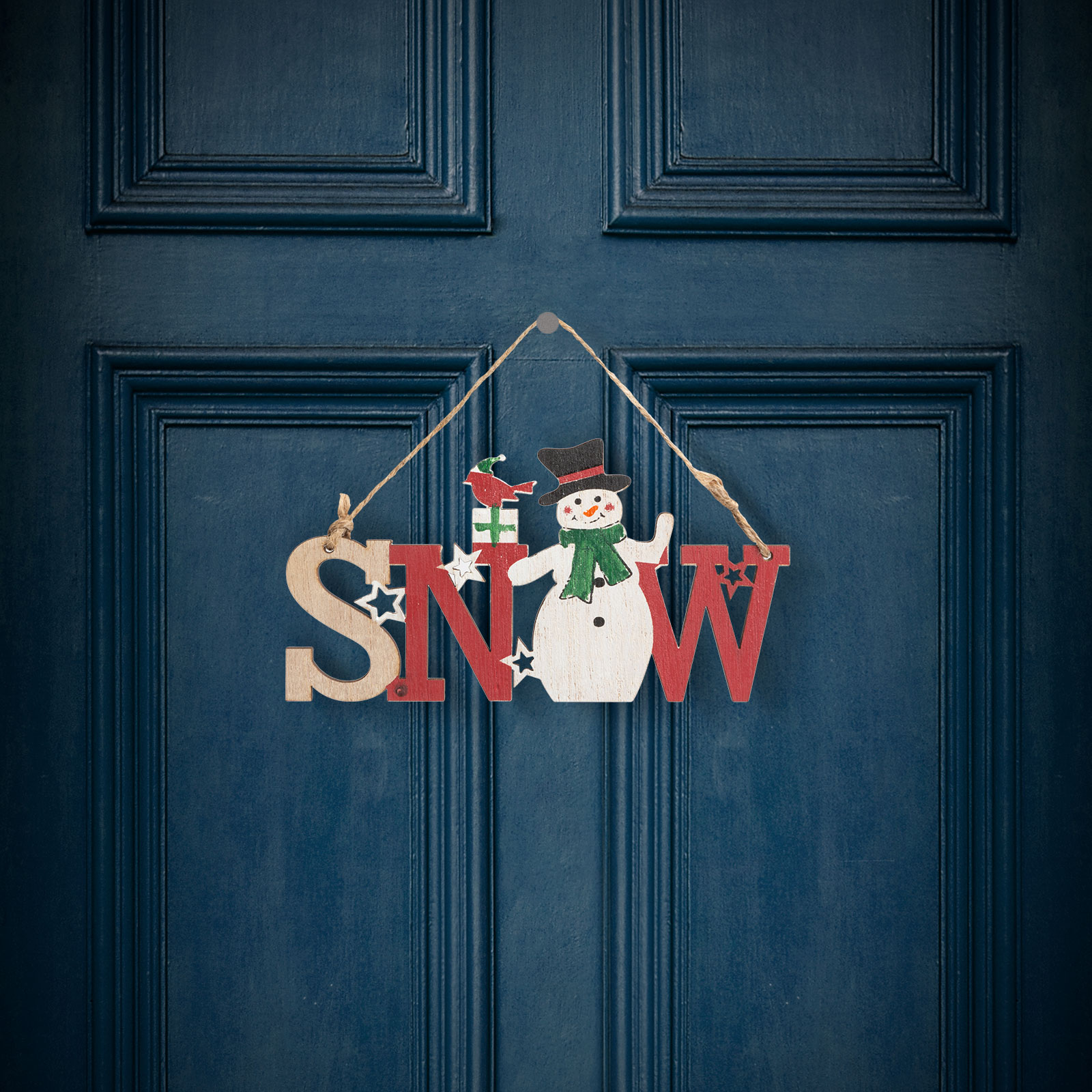 Karácsonyi dekor fából – hóember – akasztóval – 17 x 9 cm