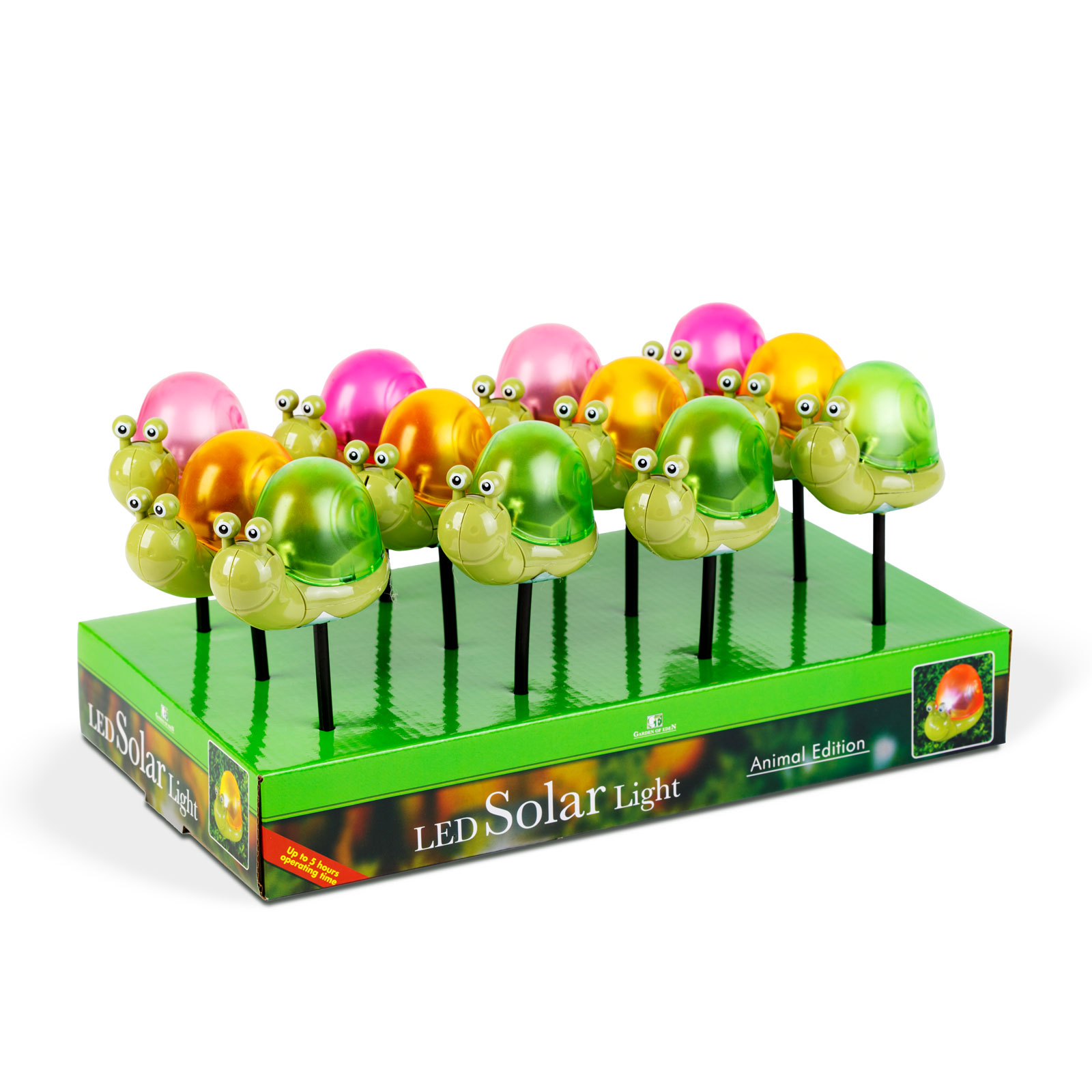 Az aranyos és praktikus szolár figurák, amelyek sötétben egy kis varázslattal életre kelnek és vidámságot hoznak kertjébe vagy teraszára. A leszúrótüske lehetővé teszi, hogy könnyedén elhelyezhesse a kívánt helyen. A szolár technológia segítségével ezek a bájos figurák napközben energiát gyűjtenek a napfényből, majd éjszaka automatikusan felkapcsolnak, szépen megvilágítva a formát és környezetüket. A csigák vidám színekben pompáznak, amelyek méginkább feldobják a környezetüket és hangulatos világítást biztosítanak. Kiváló kerti dekorációs eszköz, amely elnyeri a gyermekek tetszését is!