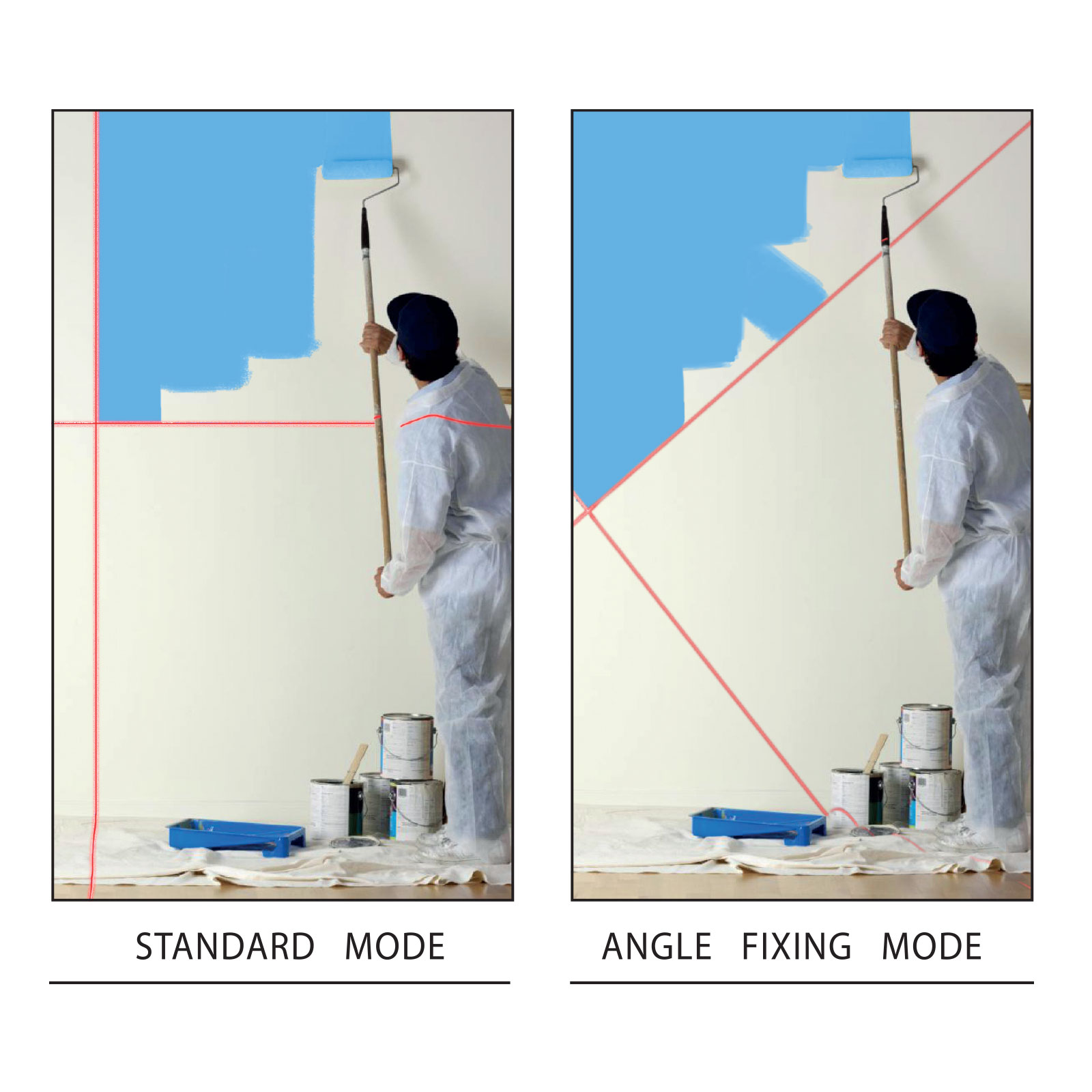 - Normál és fix lézerkereszt üzemmód