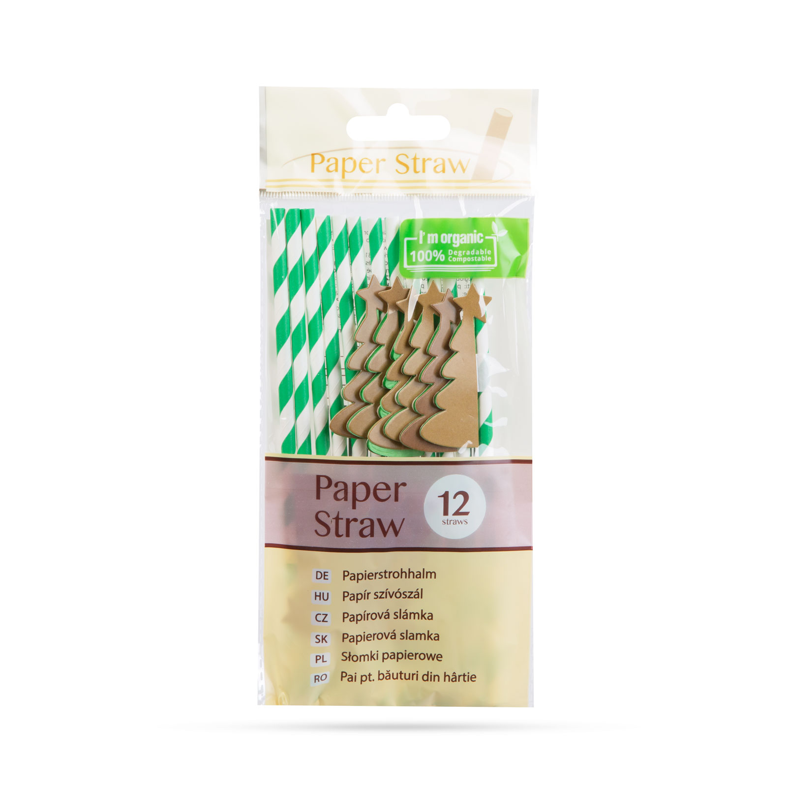 Papír szívószál – 3D fenyőfa – 197 x 6 mm – 12 db / csomag