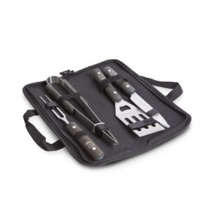 Grillező eszköz szett – 4 db-os – fa nyéllel, táskában